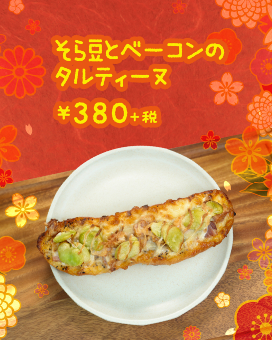 カリッと香ばしく、ホクっと甘い。旨みの詰まったベーコンがそら豆の風味と美味しさを引き立てるベシャメルソースたっぷりのタルティーヌ。